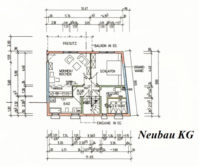 Der Altbau (Bj. 1961) mit einer Wohnfläche von ca. 100m² hat folgende Aufteilung: